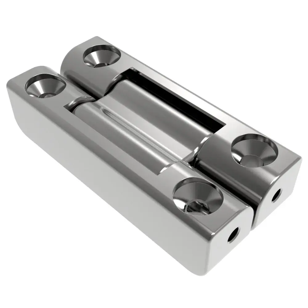 Gracias a su diseño empotrado, estas bisagras ocupan poco espacio cuando están plegadas y se pueden montar con tornillos estándar (No. 12/M6). Están disponibles en aluminio y acero inoxidable, ofrecen torques ajustados (desde 1,0 Nm / 12 in·lb hasta 2,2 Nm / 20 in·lb), y soportan ciclos repetidos combinando durabilidad y estética.